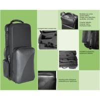 Caractéristiques extérieures : Tissu extérieur en Cordura 1000 deniers résistant à l'eau ; Surhousse déployable en cas de grosses averses ; Dos confortable en néoprène ; Renforts en tissu PVC ; Pochette accessoires latérale ; Grande poche extensible pour partitions ; Bretelles sac à dos escamotables ; Sangle avec épaulière, ajustable, amovible ; Poignée latérale et poignée métro.